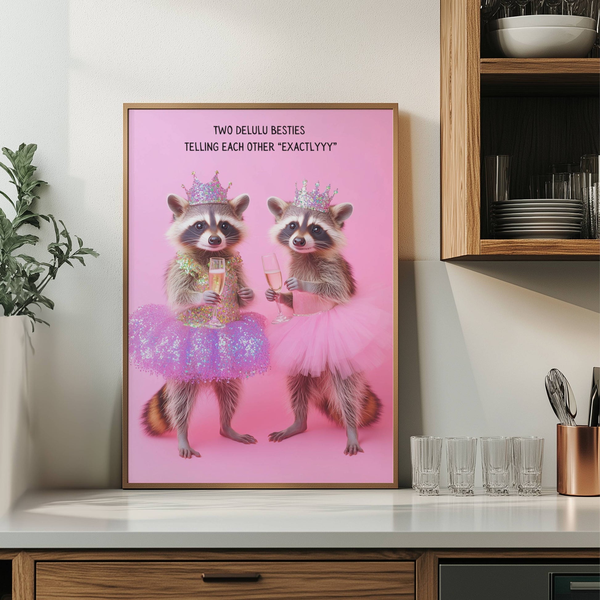 The internet's favourite delulu besties are now available for you and your delulu bestie to enjoy. This pack includes 1 x file with text and 1 x file without text. The text reads "TWO DELULU BESTIES TELLING EACH OTHER EXACTLYYY" There are two files in total.