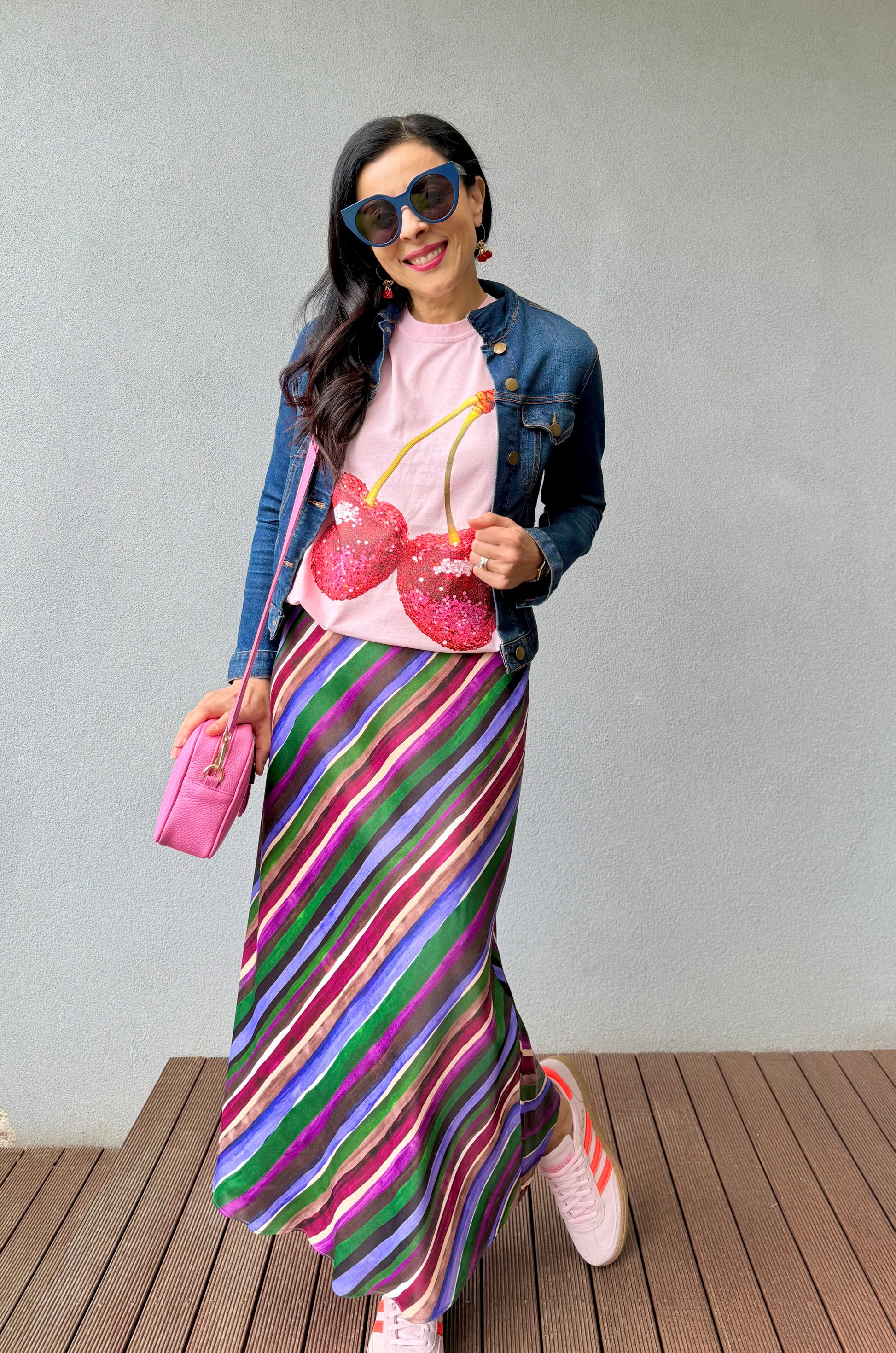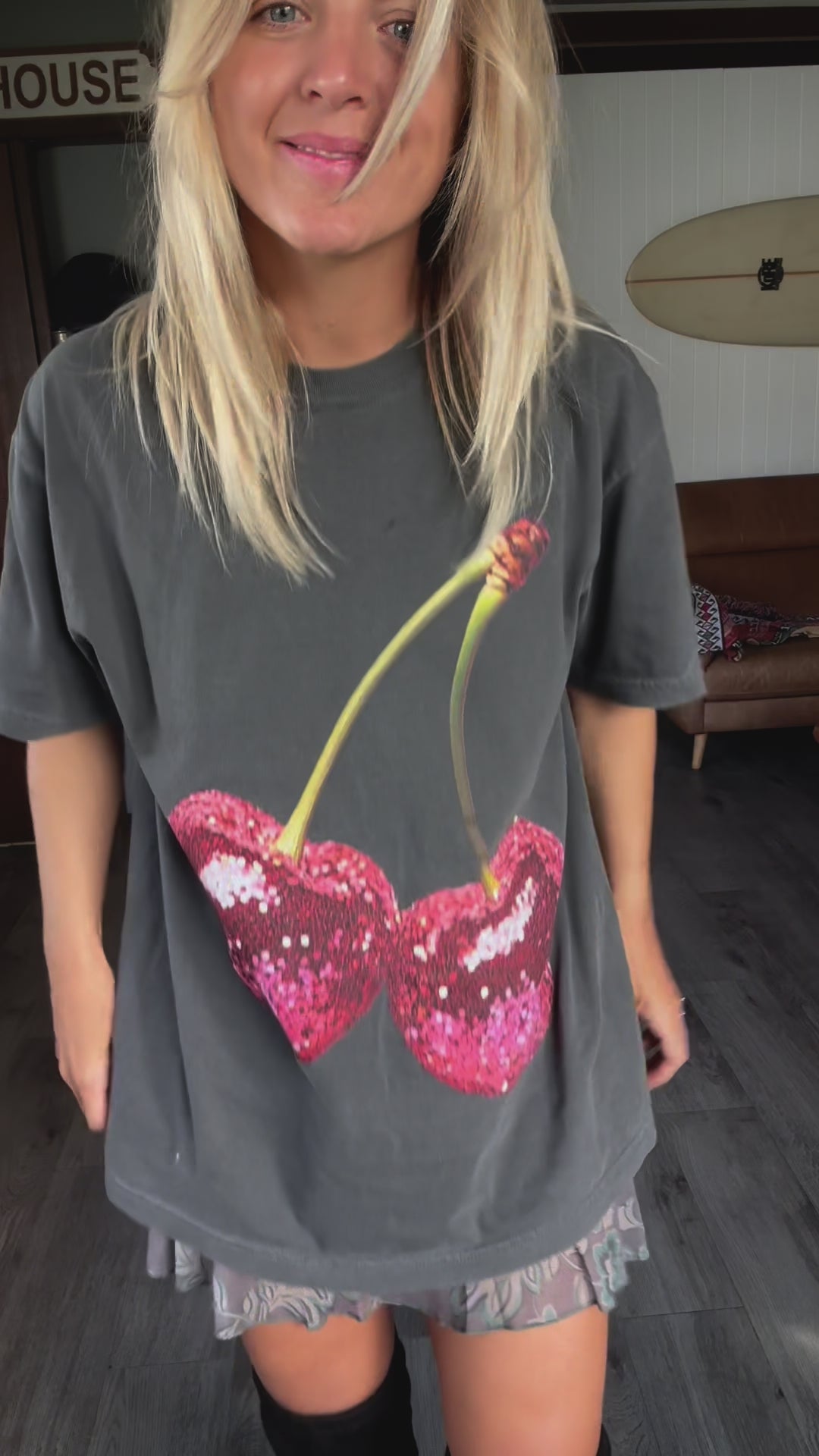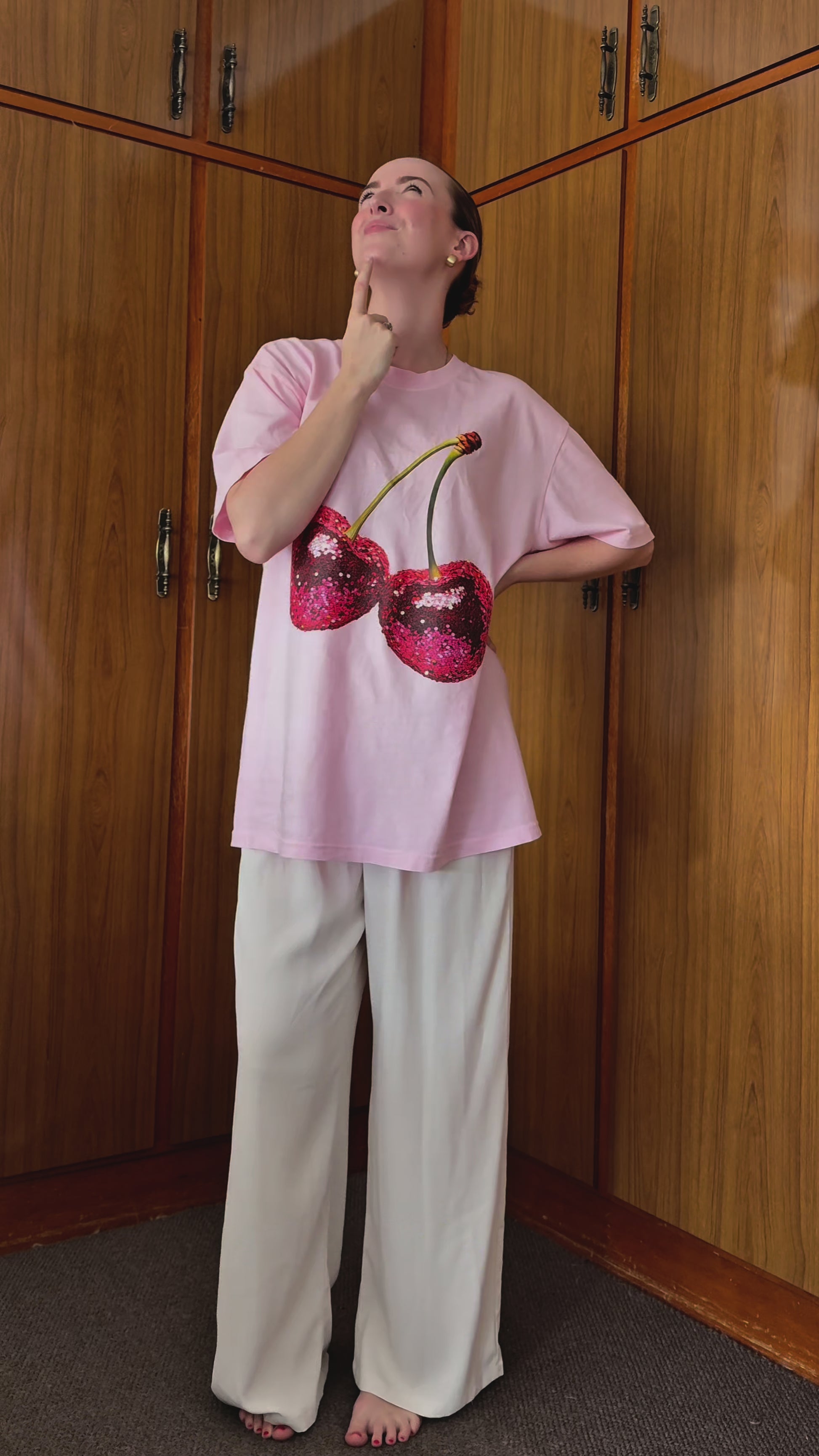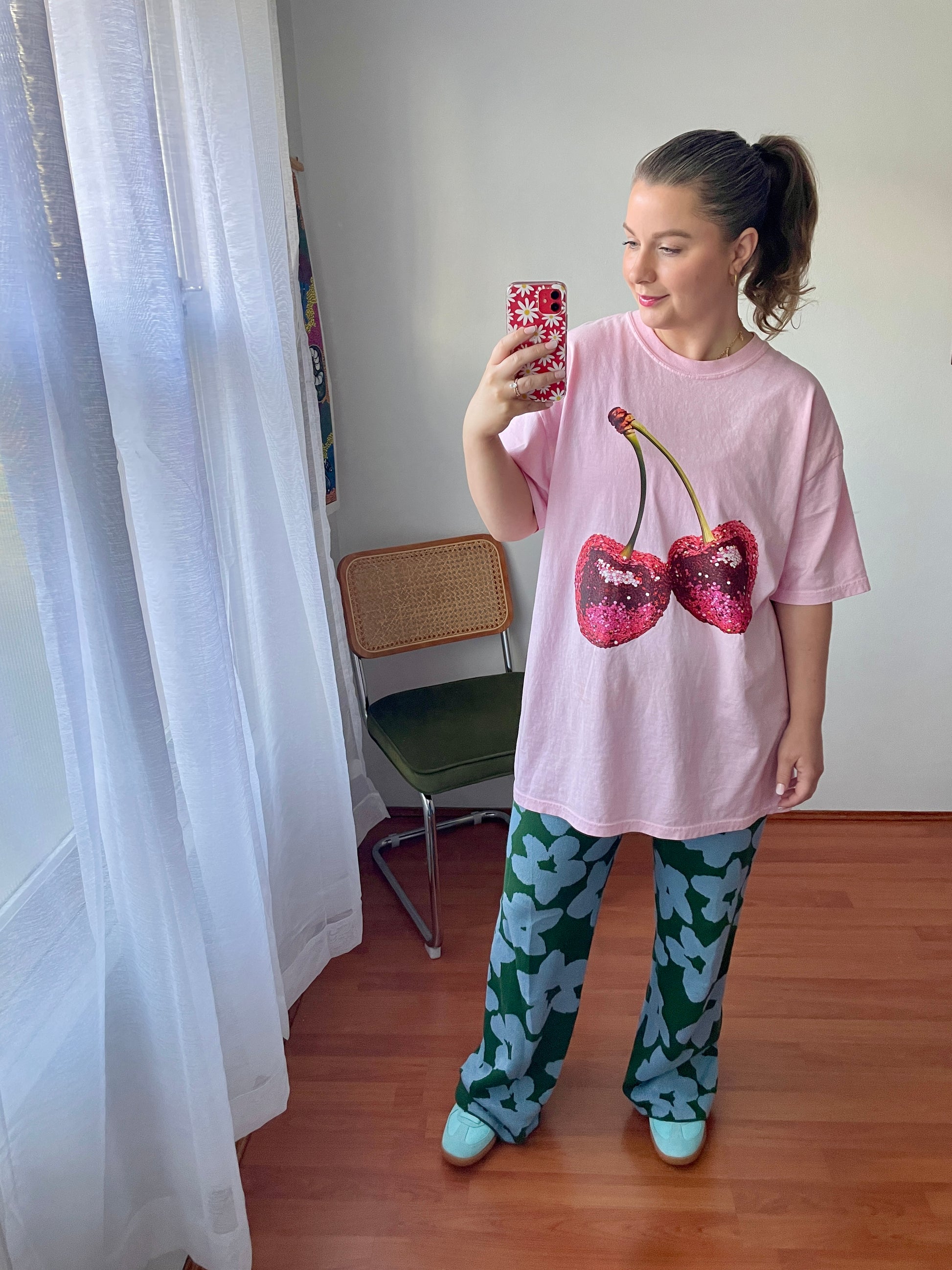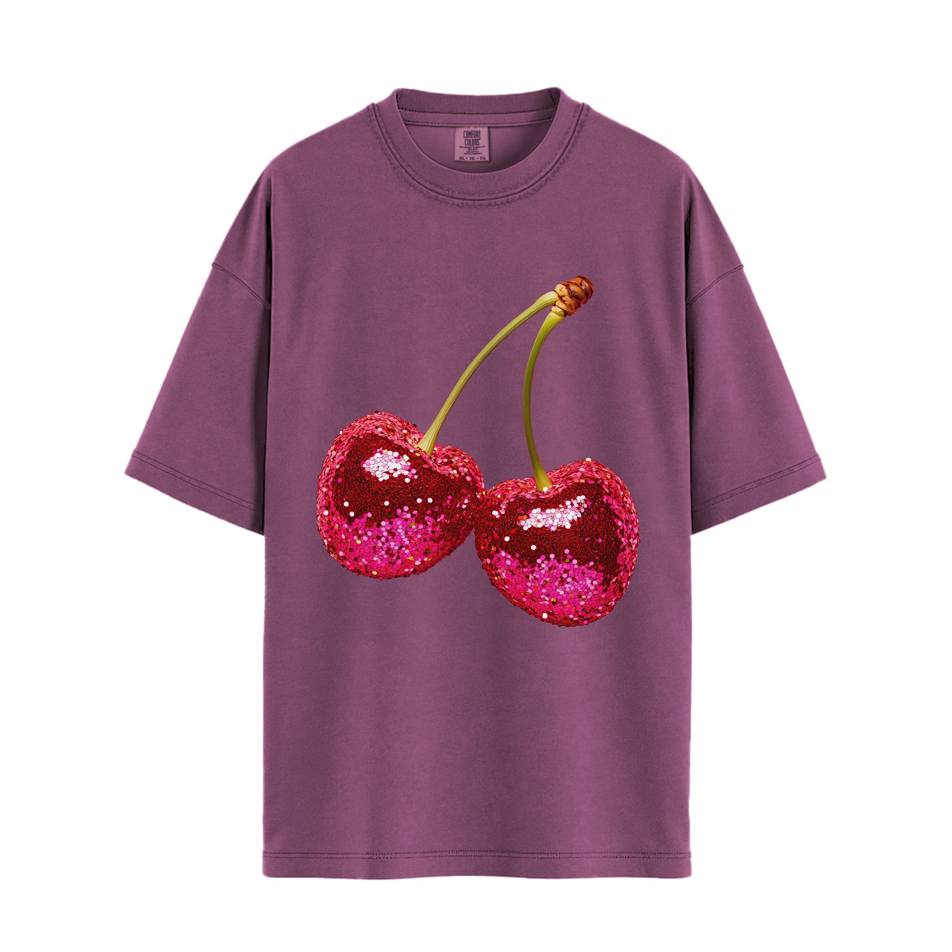 Printed design: Bold, vibrant cherries with disco energy. No glitter, sequins, or fuss. Just a print that lasts.
