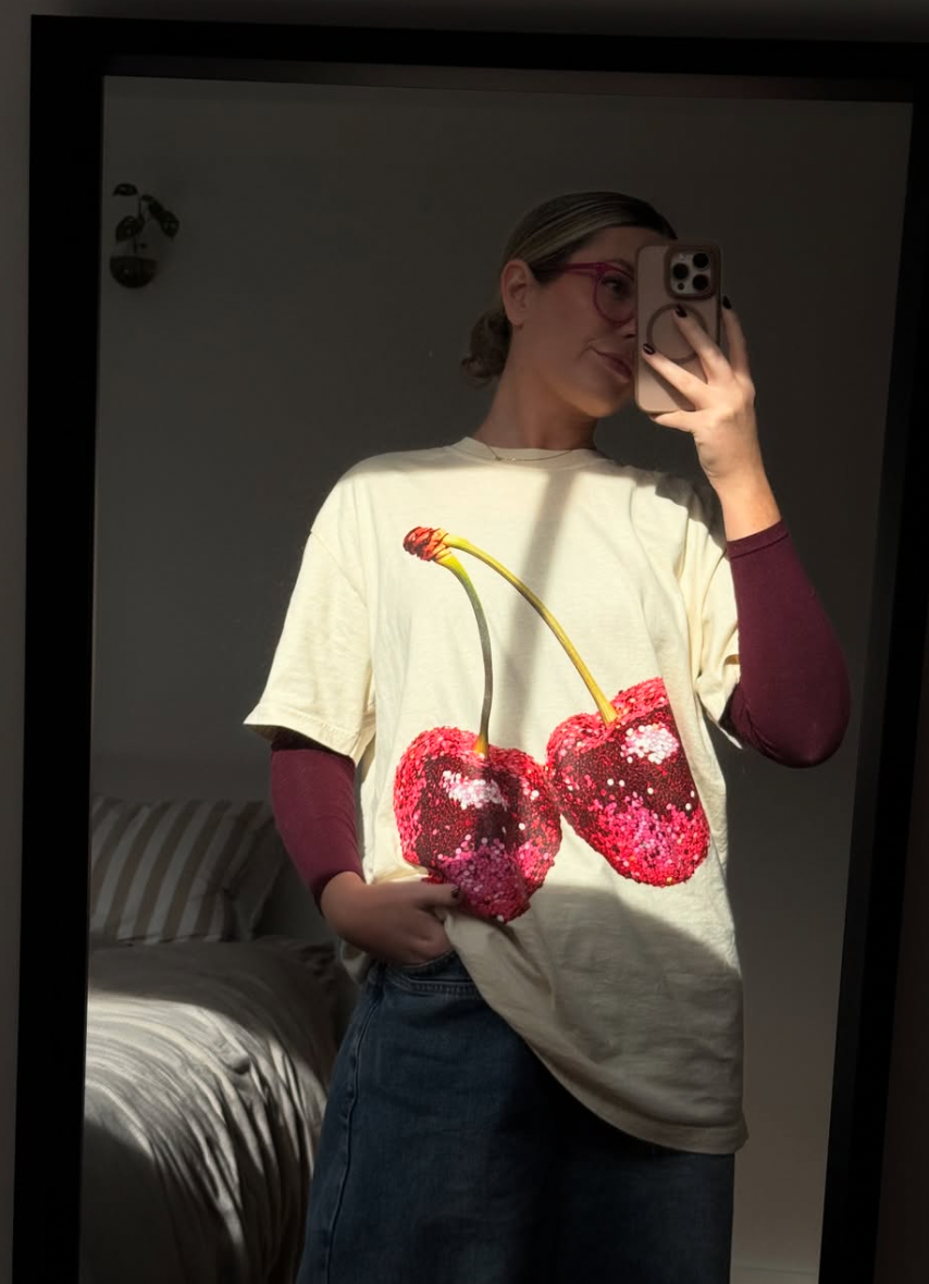 A playful hit of dopamine for your wardrobe. The Disco Cherries tee adds colour and fun to your everyday- soft, easy to wear, and made to get noticed!