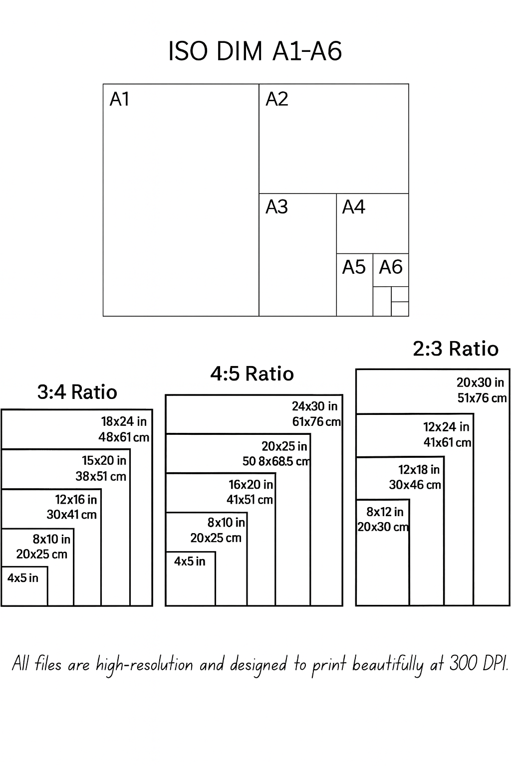 ✅ A-Series (ISO) – Common print sizes: A6, A5, A4, A3, A2, A1