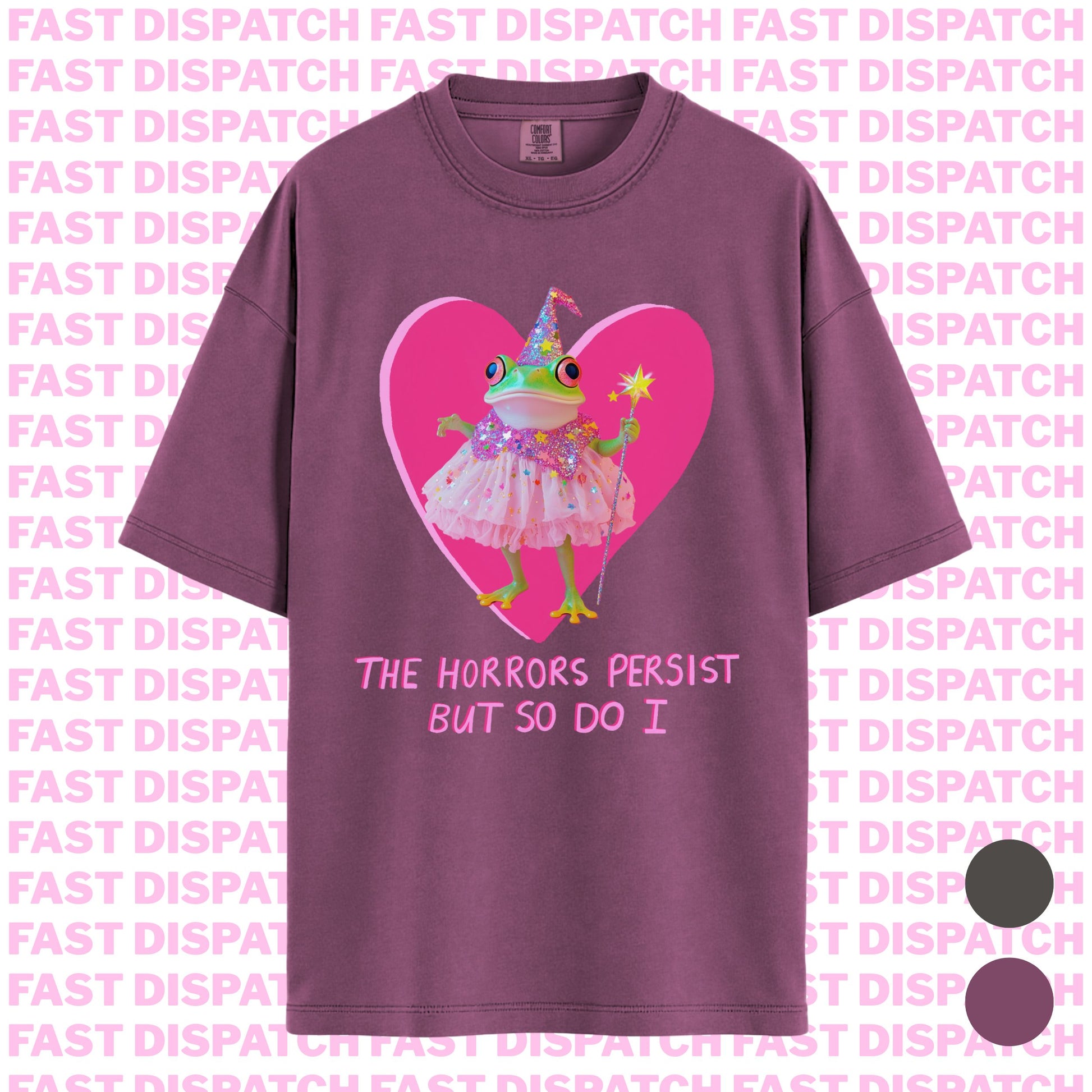 You got this! If this tiny little weird magical frog can do it, so can you ๐Ÿ’–ย A beautiful message on a super comfy t-shirt; what more is there to say?ย Repeat after me:ย the horrors persist, but so do I. There you go - feel better yet? ๐Ÿธ